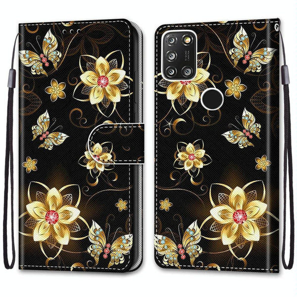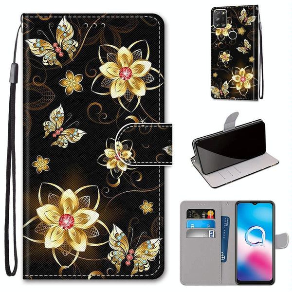 For Alcatel 3X 2020 Coloured Drawing Cross Texture Horizontal Flip PU Leather Case with Holder & Card Slots & Wallet & Lanyard(Gold Diamond Butterfly)