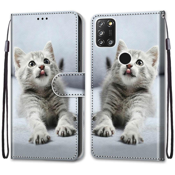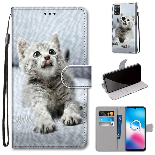For Alcatel 3X 2020 Coloured Drawing Cross Texture Horizontal Flip PU Leather Case with Holder & Card Slots & Wallet & Lanyard(Small Gray Cat)