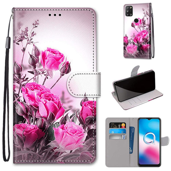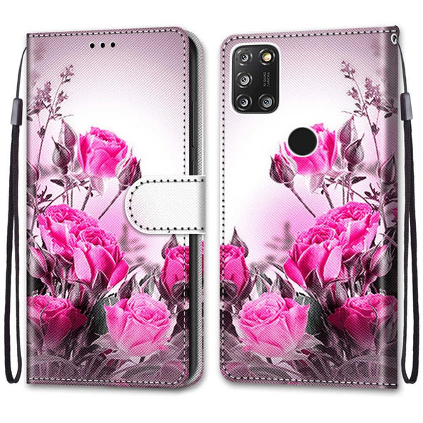 For Alcatel 3X 2020 Coloured Drawing Cross Texture Horizontal Flip PU Leather Case with Holder & Card Slots & Wallet & Lanyard(Wild Rose)