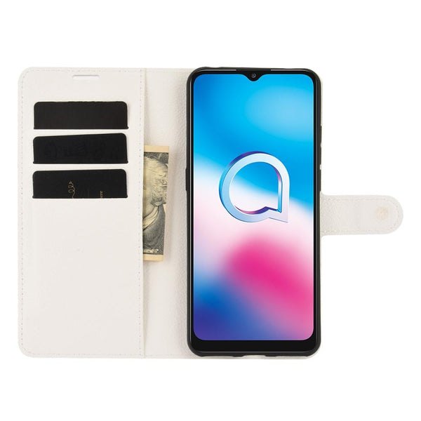 For Alcatel 3X 2020 Litchi Texture Horizontal Flip Protective Case with Holder & Card Slots & Wallet(White)