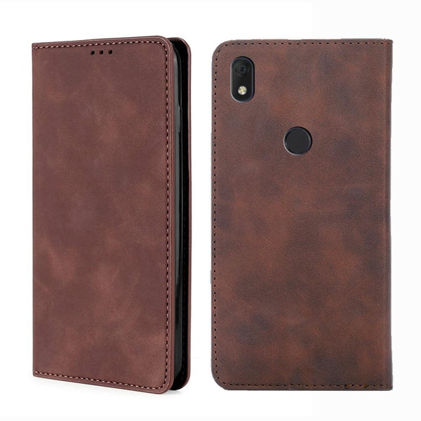 For Alcatel Axel / Lumos Skin Feel Magnetic Horizontal Flip Leather Phone Case(Dark Brown)