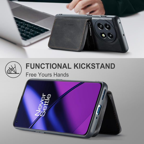 For OnePuls 11 JEEHOOD Magnetic Zipper Horizontal Flip Phone Leather Case(Black)