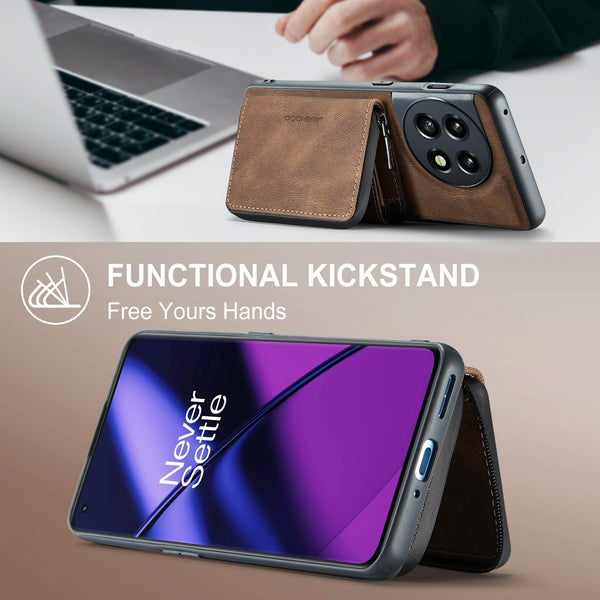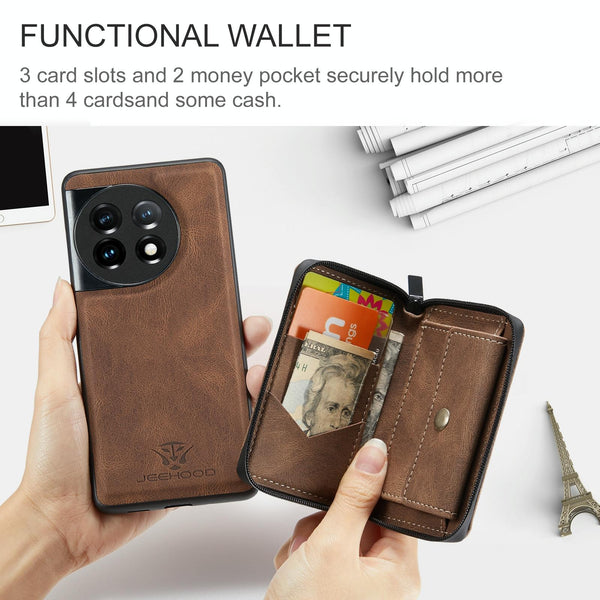 For OnePuls 11 JEEHOOD Magnetic Zipper Horizontal Flip Phone Leather Case(Brown)