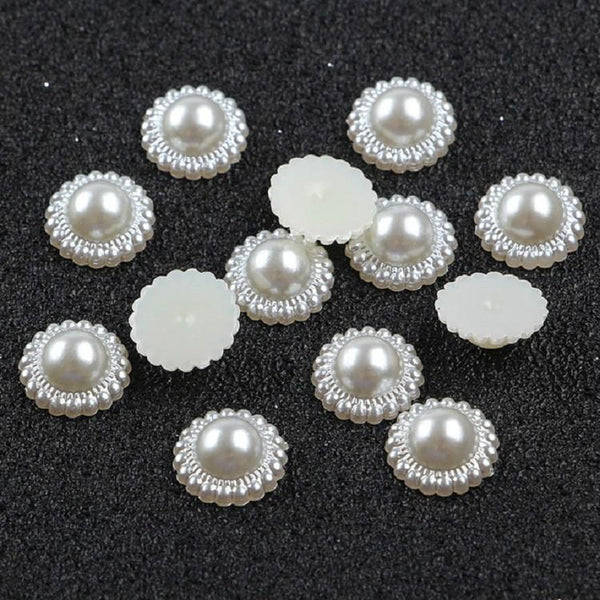 1 Packet Sun Flower Imitation Pearl Patch DIY Mobile Phone Hair Accessories Environmental Protection Patch(Creamy-white)