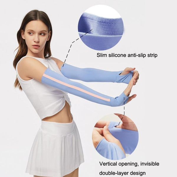 1 Pair Sunscreen Ice Silk Sleeves Outdoor Cycling Driving UV Protection Sleeves, Size: L(Navy+White)
