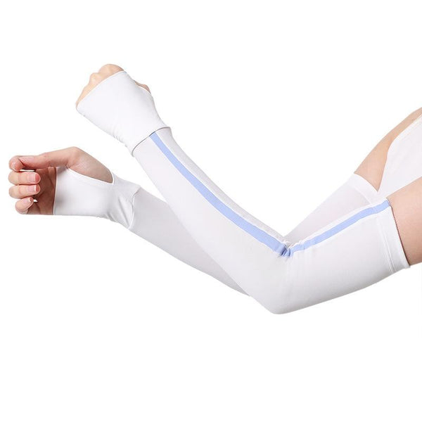 1 Pair Sunscreen Ice Silk Sleeves Outdoor Cycling Driving UV Protection Sleeves, Size: L(White+Blue)