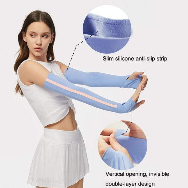 1 Pair Sunscreen Ice Silk Sleeves Outdoor Cycling Driving UV Protection Sleeves, Size: M(White+Blue)