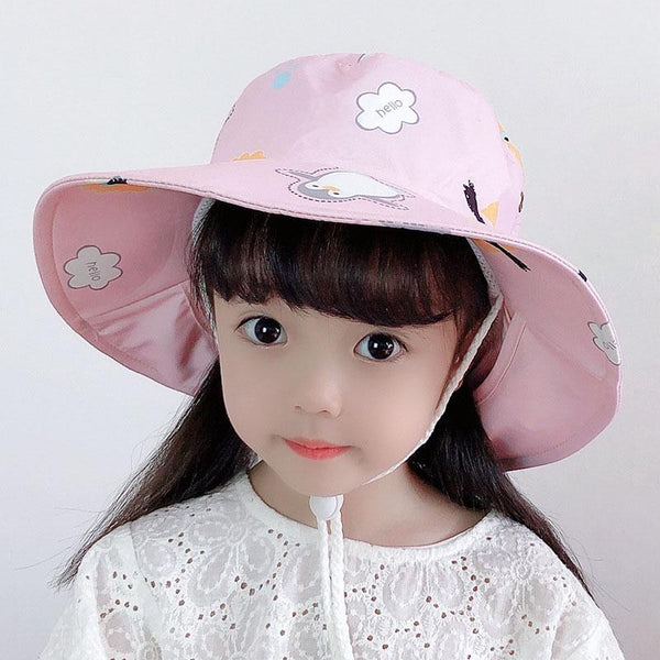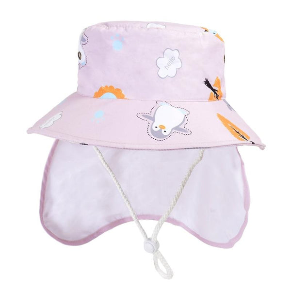 1015 Summer Children Sun Hat Outdoor Sun Protection Bucket Hat With Shawl(Pink)
