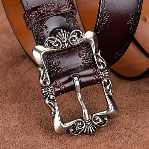 105cm Women Carved Leather Waist Band Simple Pin Buckle Belt(Camel)