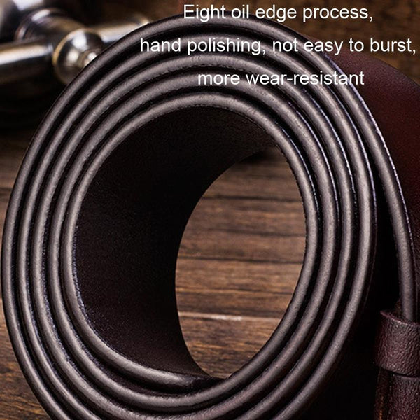 110cm Men Leather Pin Buckle Belt Retro Lacquered CowhideWaist Band(ZK-032 Coffee)