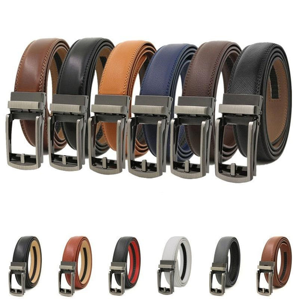 110cm Second Layer Cowhide Men Business Belt Automatic Buckle Belt(Black Red)