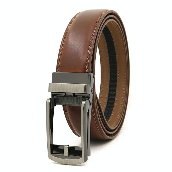 110cm Second Layer Cowhide Men Business Belt Automatic Buckle Belt(Light Brown)