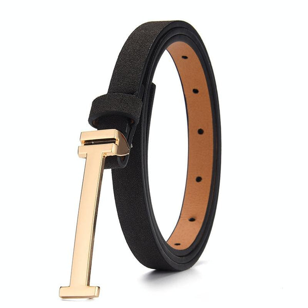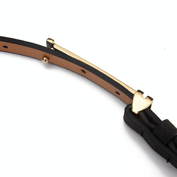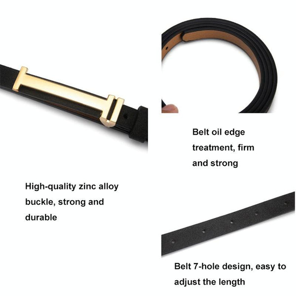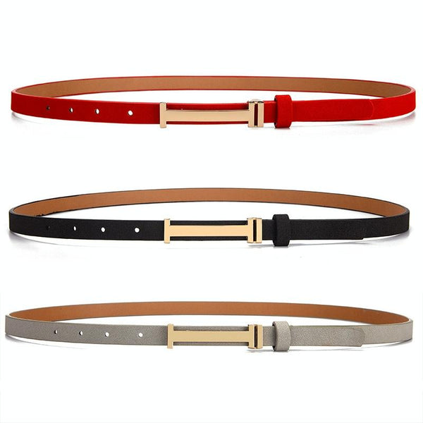 110cm Women Adjustable Leather Decorative Belt Casual Jeans Gold Buckle Thin Belt(Red)