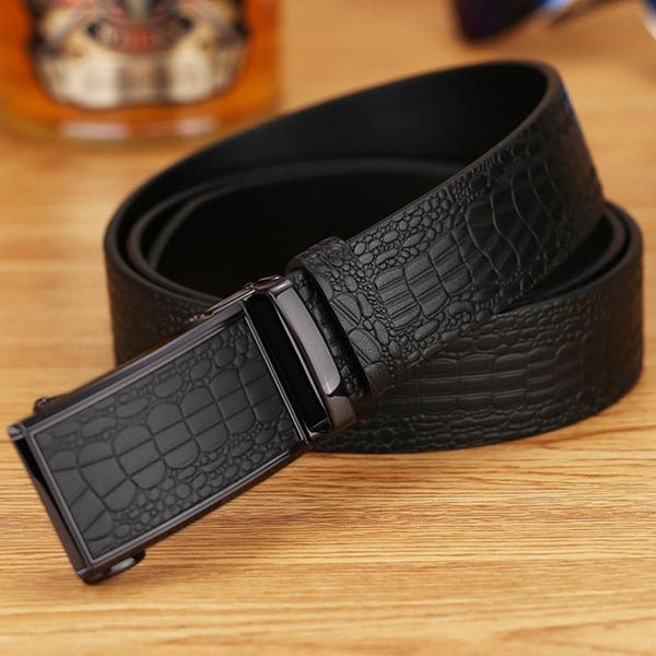 115cm Crocodile Pattern Leather Men Business Belt Without Buckle(Black Brown)
