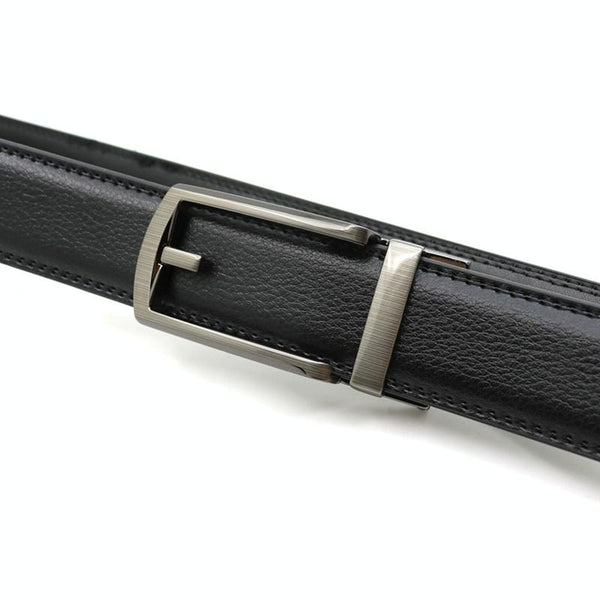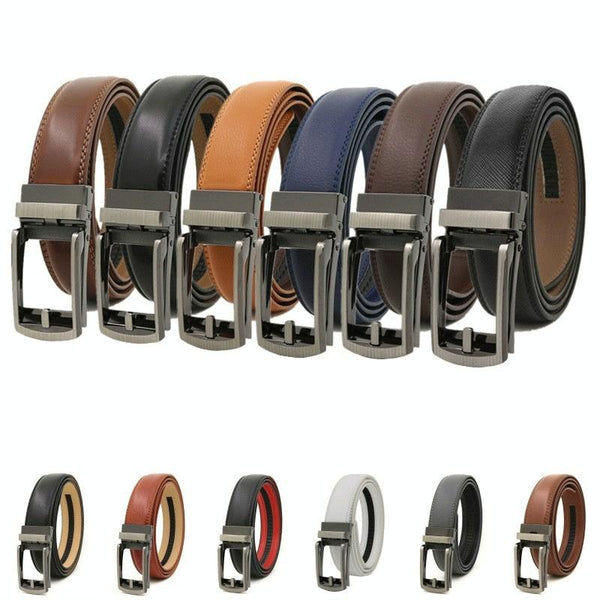 120cm Second Layer Cowhide Men Business Belt Automatic Buckle Belt(Black Red)
