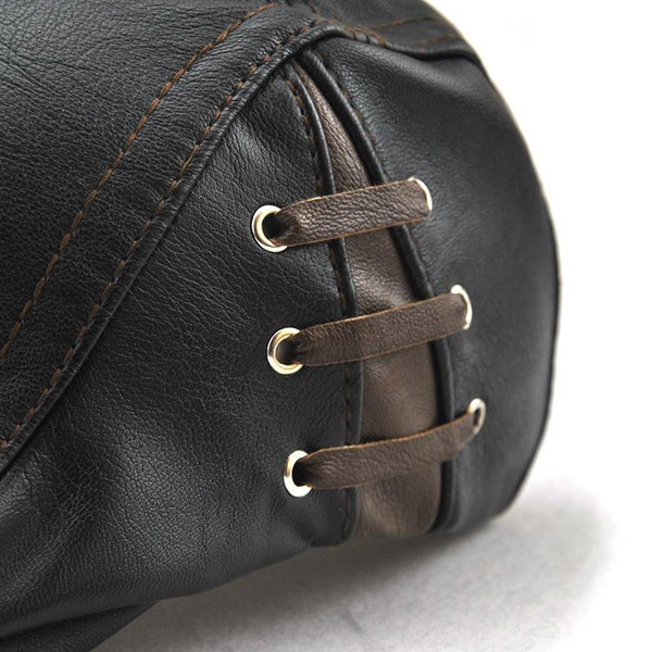 12968 Perforated Strap Design Outdoor All-Match PU Leather Peaked Cap Berets, Size:One Size(Dark Coffee)
