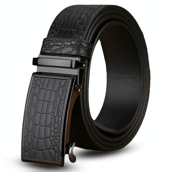 130cm Crocodile Pattern Leather Men Business Belt Without Buckle(Black)