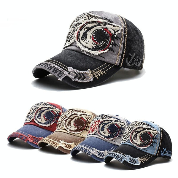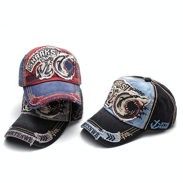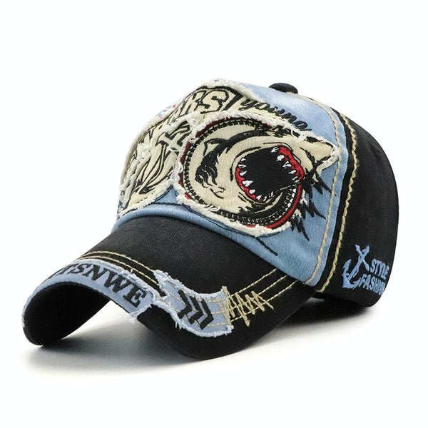 13948 Shark Pattern Washable Baseball Cap Spring and Autumn Sun Hat, Size:One Size(Denim Blue)
