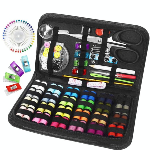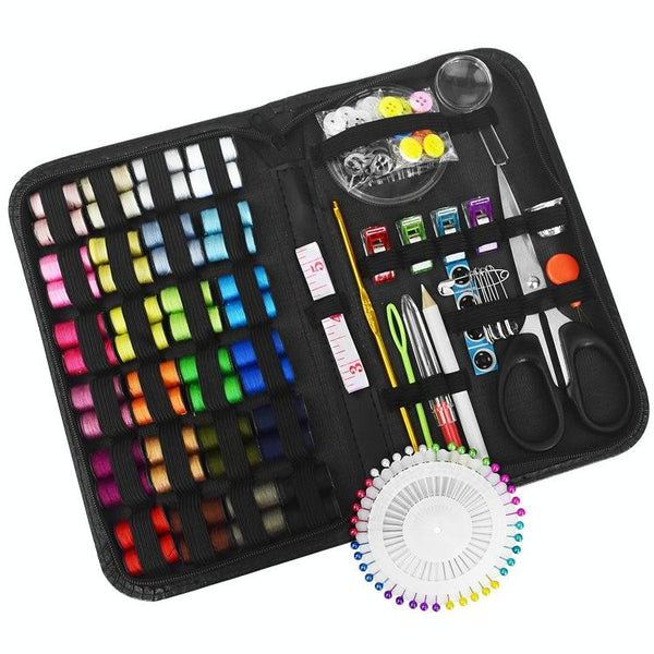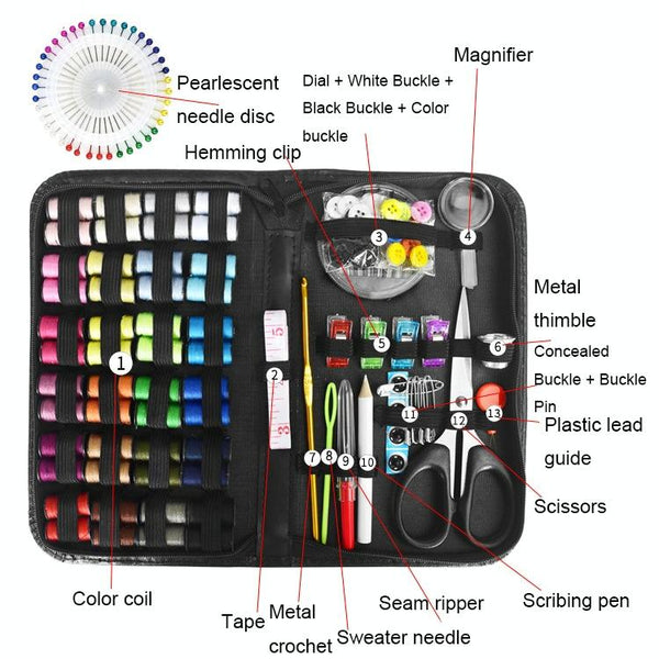 -Silver Needle: Tape Measure x 1, Color Coil x 48, Color Buckle x 10, White Buckle x 10, Black Buckle x 10, Metal Crochet Needle x 1, Dial (30 Pieces) x 1, Magnifying Glass x 1, Thimble x 1 , thread guide x 1, scissors x 1, hidden button x 4, pin x 5, marker button x 4, marking pen x 1, seam ripper x 1, sweater needle x 1
