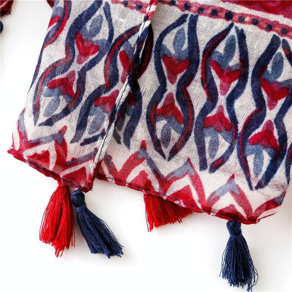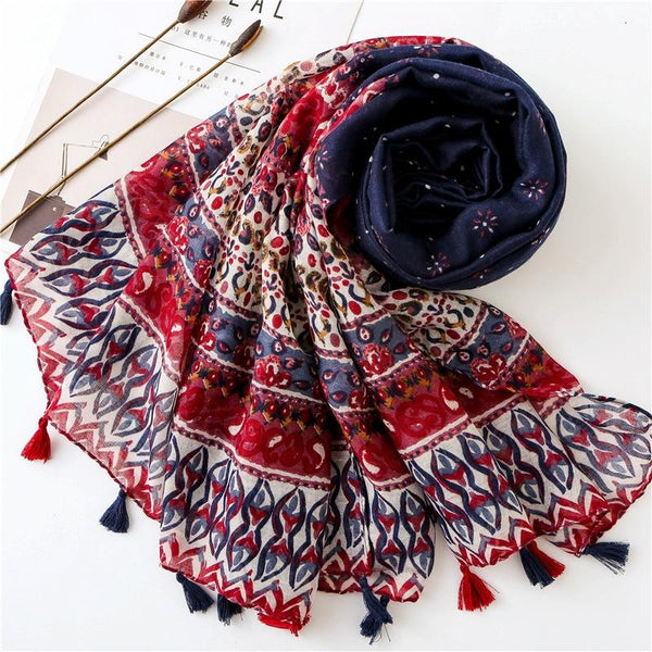180 X 85cmWomen Cotton And Linen Scarf Retro Splicing Bohemian Printed Silk Shawl SL1903-010