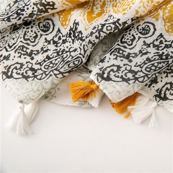 180 X 85cmWomen Cotton And Linen Scarf Retro Splicing Bohemian Printed Silk Shawl SL1909-009