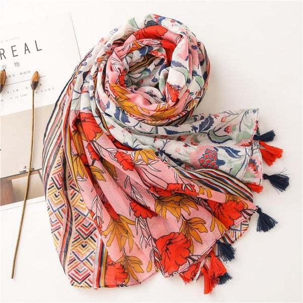 180 X 85cmWomen Cotton And Linen Scarf Retro Splicing Bohemian Printed Silk Shawl SL2008-005 Pink
