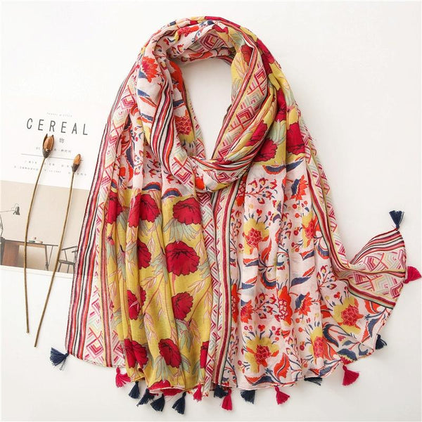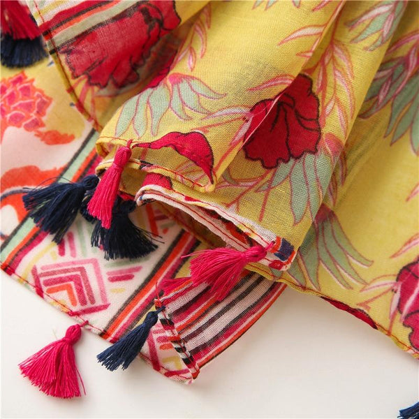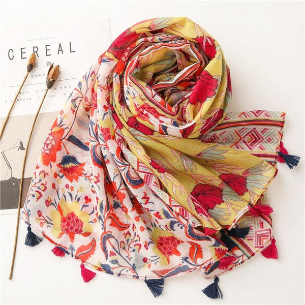 180 X 85cmWomen Cotton And Linen Scarf Retro Splicing Bohemian Printed Silk Shawl SL2008-005 Yellow