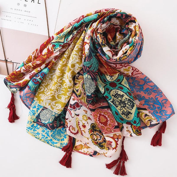 180 X 85cmWomen Cotton And Linen Scarf Retro Splicing Bohemian Printed Silk Shawl SL2202-026