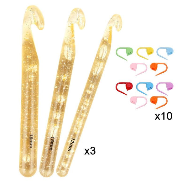 18mm+15mm+12mm+10 Pins Transparent Bold Crystal Crochet Knitting Tool Set