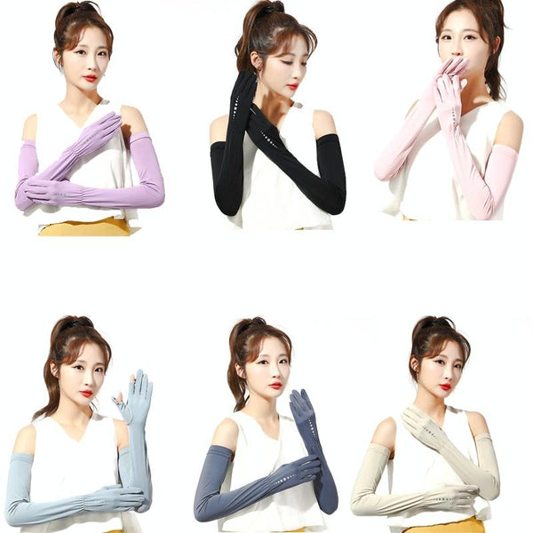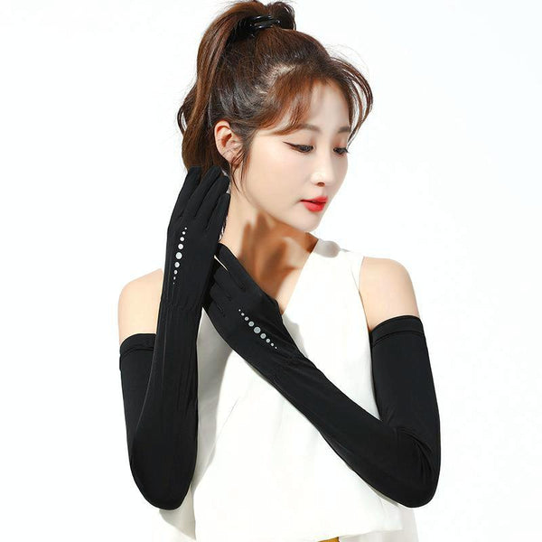 1pair Long Sunscreen Gloves Summer Women Extended Arm Guards Anti-ultraviolet Ice Sleeves Free Code(Black)