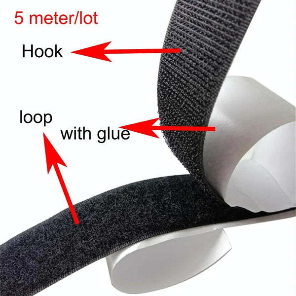 2.5cm Nylon Garment Textile Accessories With Double Sided Adhesive Hook and Loop Fastener, Length: 5m(Black)