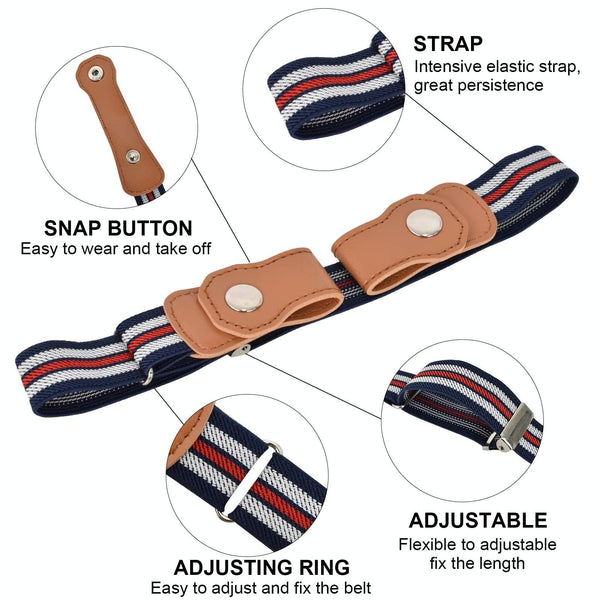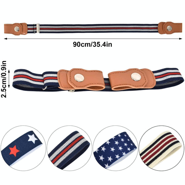 1. Adjustable size: buckleless belt suitable for children. 53cm long, stretches to 90cm, 2.5cm wide