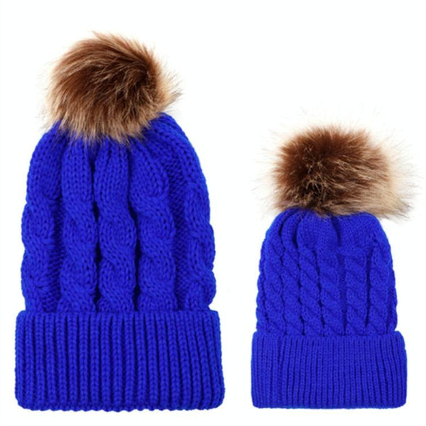 2 in 1 Autumn and Winter Parent-child Hat Set Warm Twist Texture Knit Hat with Wool Ball, Size:Parent-child(Royalblue)