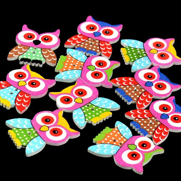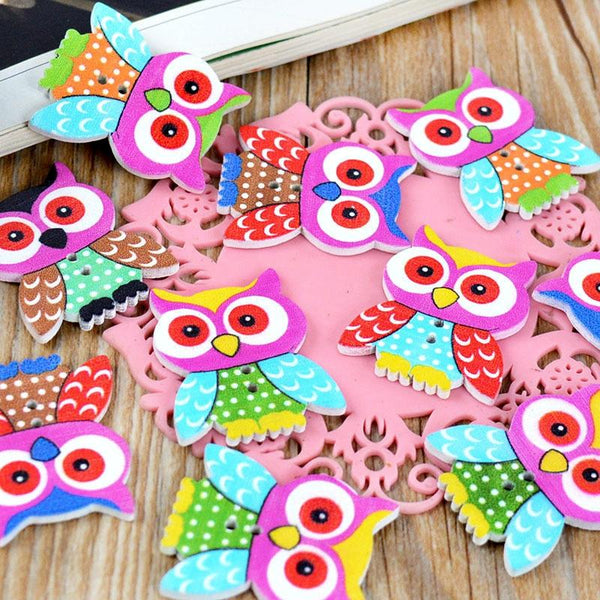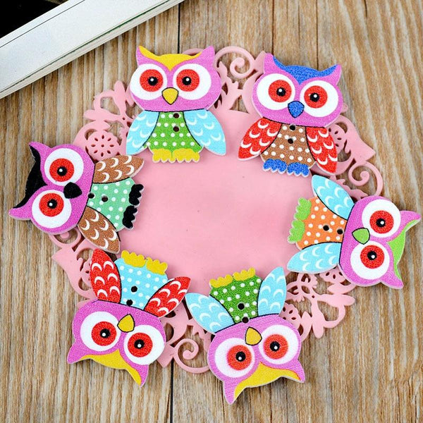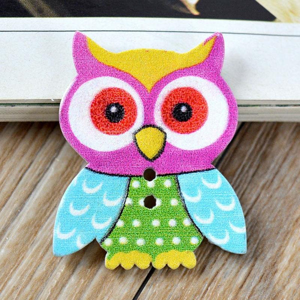 20 in 1 Children Clothing Colorful Cartoon Owl Wooden Eye Button, Specification: 35 x 28mm