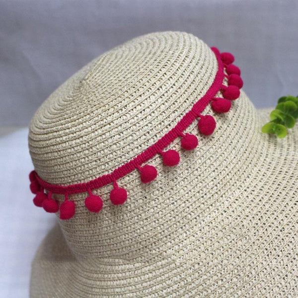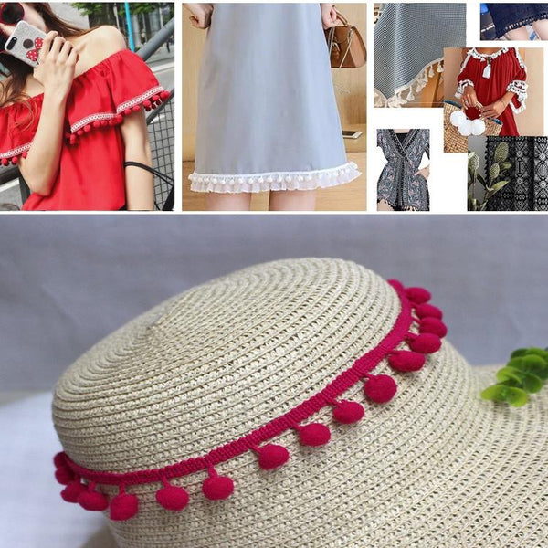 20 Yards Pompom Lace Ribbon Fur Ball Trim For Craft DIY Curtain Home Decorative Clothes Sewing Accessories(Dark Rose Red)