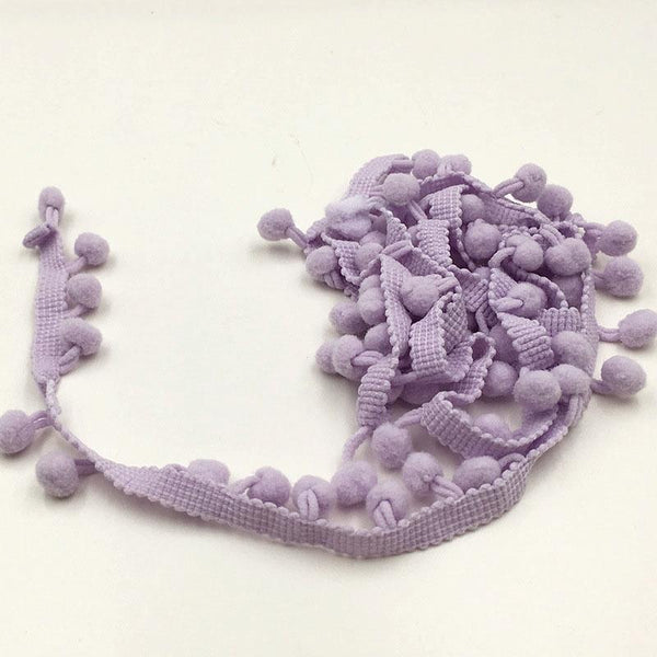 20 Yards Pompom Lace Ribbon Fur Ball Trim For Craft DIY Curtain Home Decorative Clothes Sewing Accessories(Light Purple)