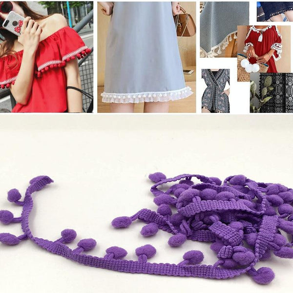 20 Yards Pompom Lace Ribbon Fur Ball Trim For Craft DIY Curtain Home Decorative Clothes Sewing Accessories(Purple)