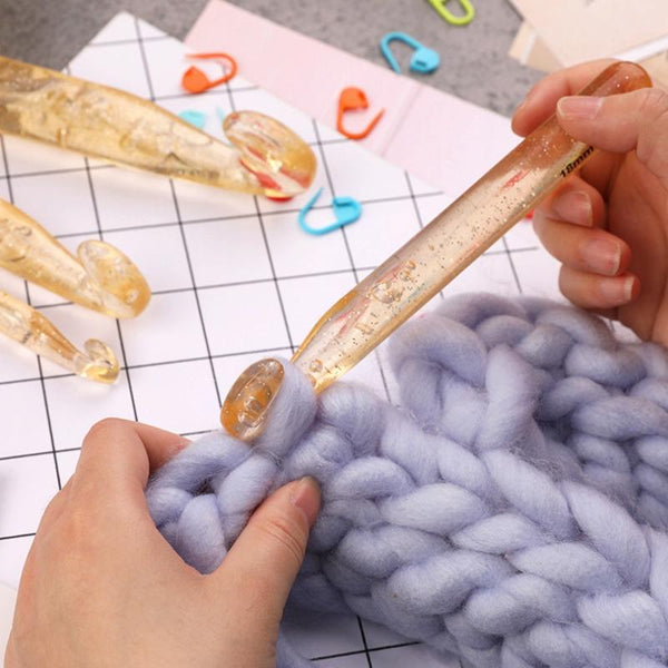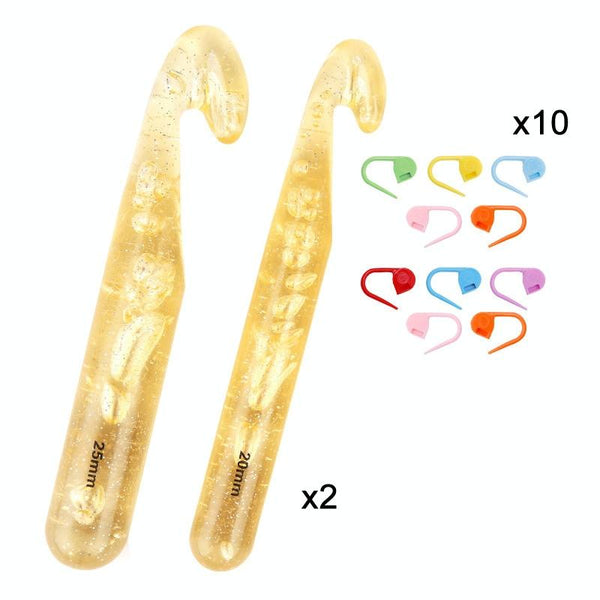 20mm+25mm+10 Pins Transparent Bold Crystal Crochet Knitting Tool Set