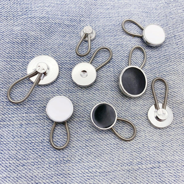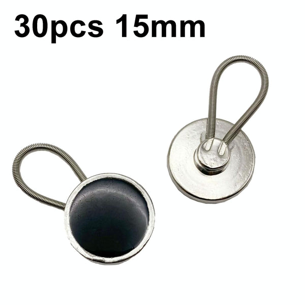 30pcs Jeans Spring Expansion Waist Button Removable Metal Pants Waist Adjustment Button Collar Decoration Button 15mm Black