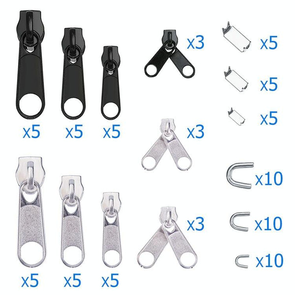 1. The zipper repair kit contains most common sizes of zippers and accessories, perfect for jeans, jackets, coats, skirts and slacks, can solve most of your zipper needs.