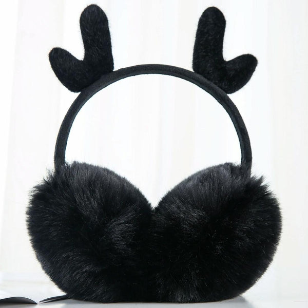 Antler Plush Earmuffs Winter Warm Fashion Retractable Ear Warmer One Size(Black)