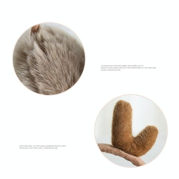 Antler Plush Earmuffs Winter Warm Fashion Retractable Ear Warmer One Size(Pink)