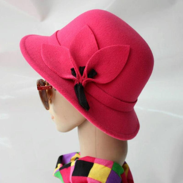 Autumn and Winter Ladies Pot Cap Woolen Top Hat with Flower Decoration, Size:One Size(Royal Blue)