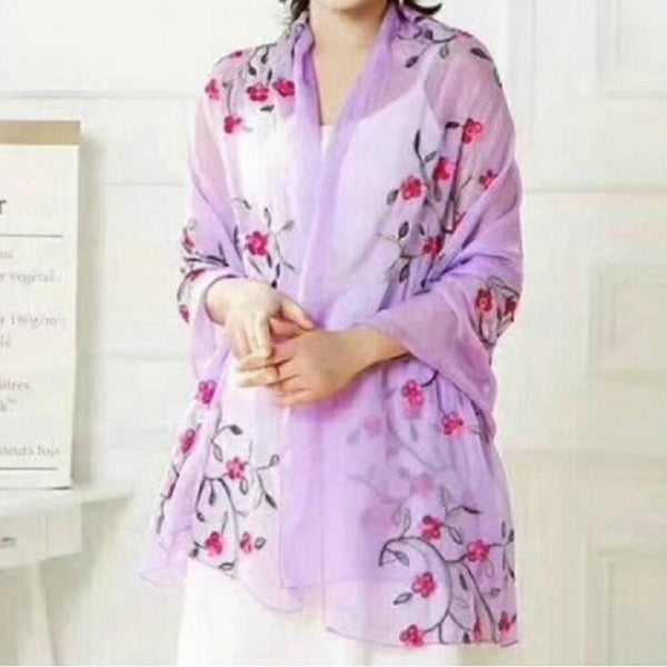 Autumn and Winter National Style Wild Peach Blossom Embroidery Pattern Long Lace Scarf Silk Scarf, Size:172 x 70cm(White)