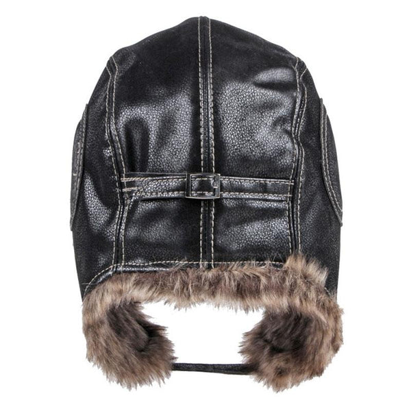 Autumn Winter Imitation Leather Outdoor Ride Hat Ear Protection Pilot Hat, Size: L About 54-58cm(Black)