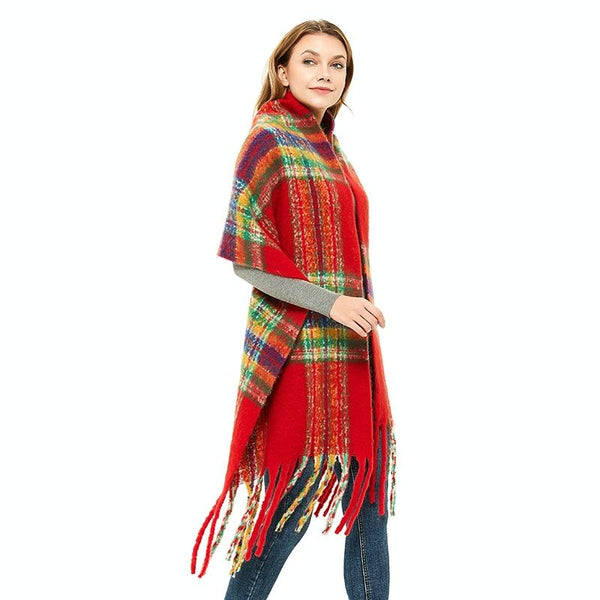 Autumn & Winter Polyester Ladies Warmth Thickened Fringed Fine Grid Scarf, Size:190cm(GWB12-03Beige)