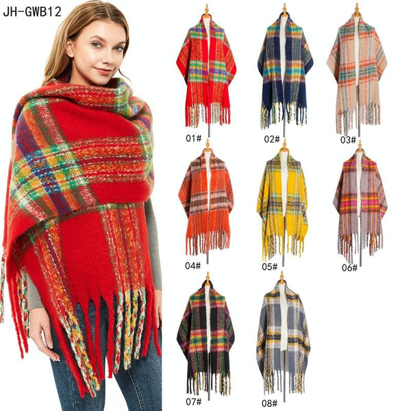 Autumn & Winter Polyester Ladies Warmth Thickened Fringed Fine Grid Scarf, Size:190cm(GWB12-03 Beige)