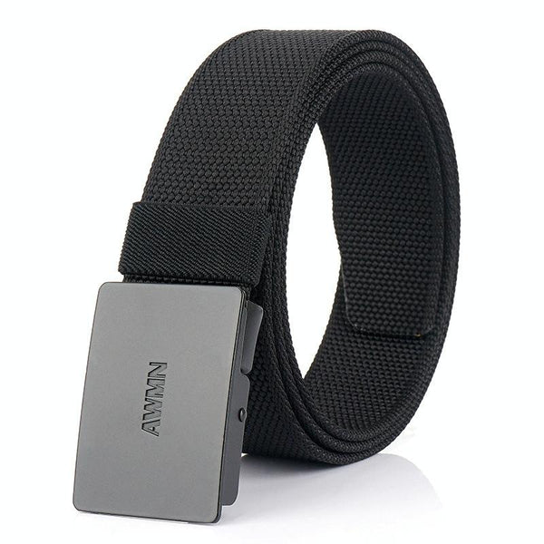 AWMN Men Nylon Canvas Cargo Jeans Casual Buckle Belt, Length: 120cm(Black Buckle Black)