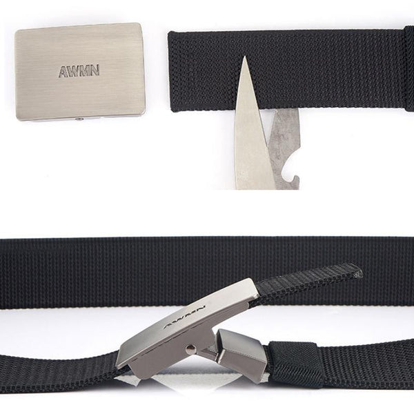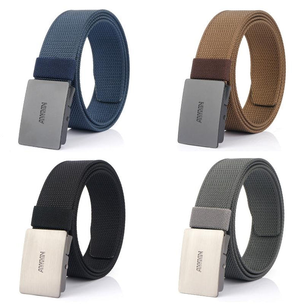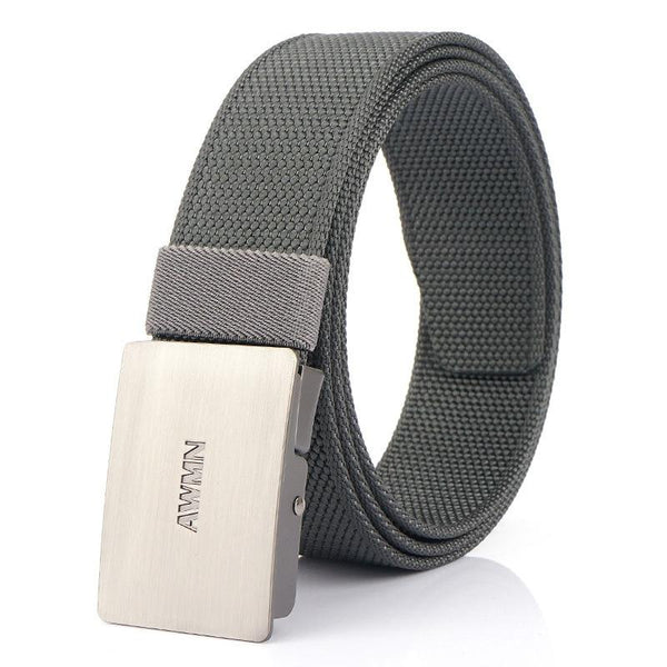 AWMN Men Nylon Canvas Cargo Jeans Casual Buckle Belt, Length: 120cm(Silver Buckle Dark Gray)