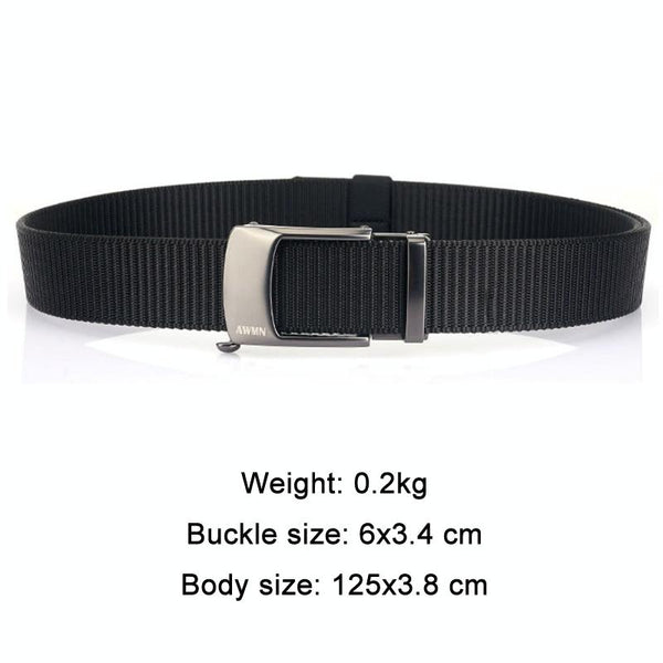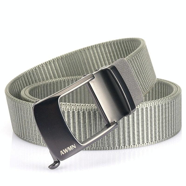AWMN Men Nylon Cutout Automatic Buckle Toothless Belt, Length: 120cm(Light Grey)